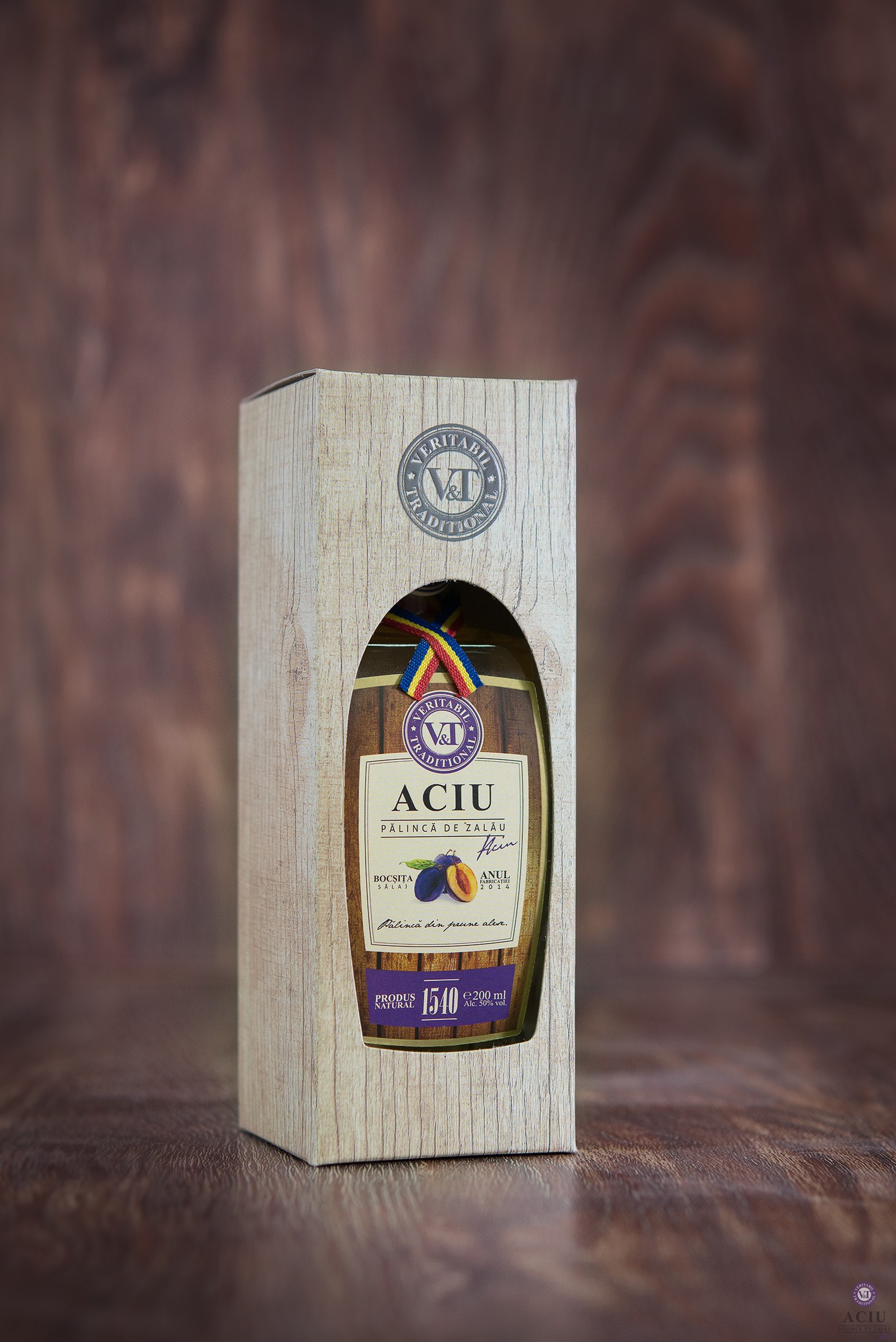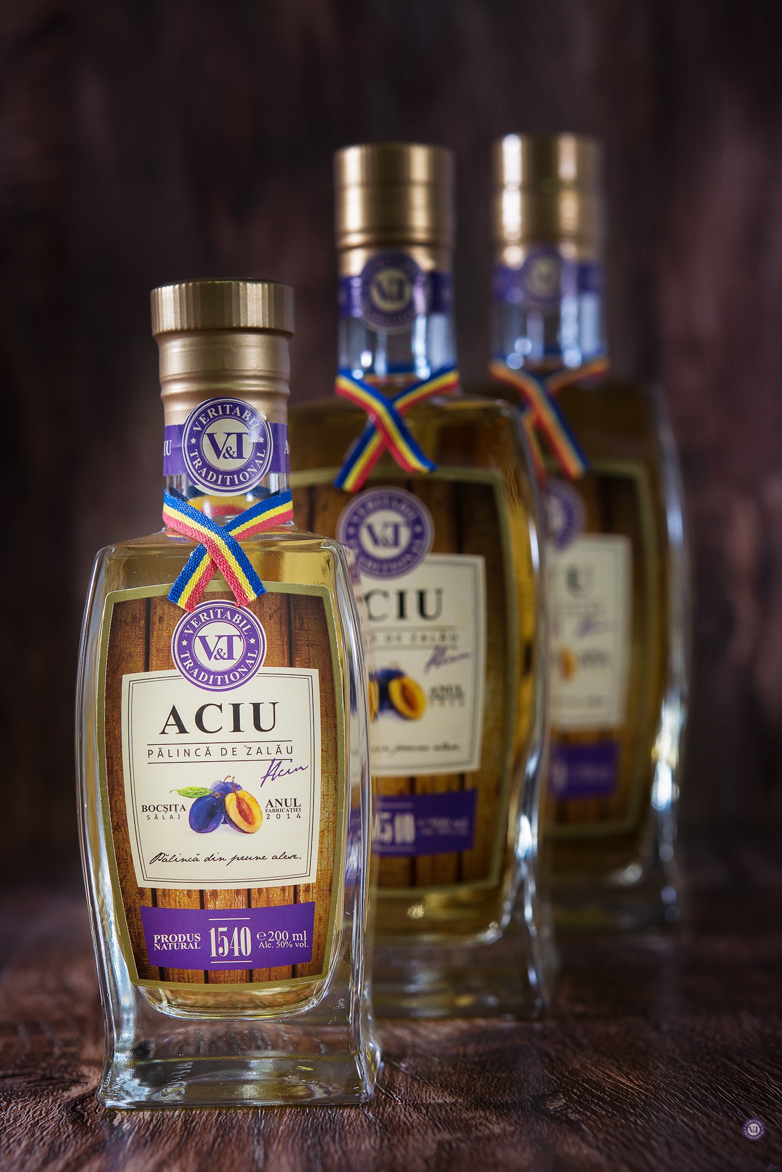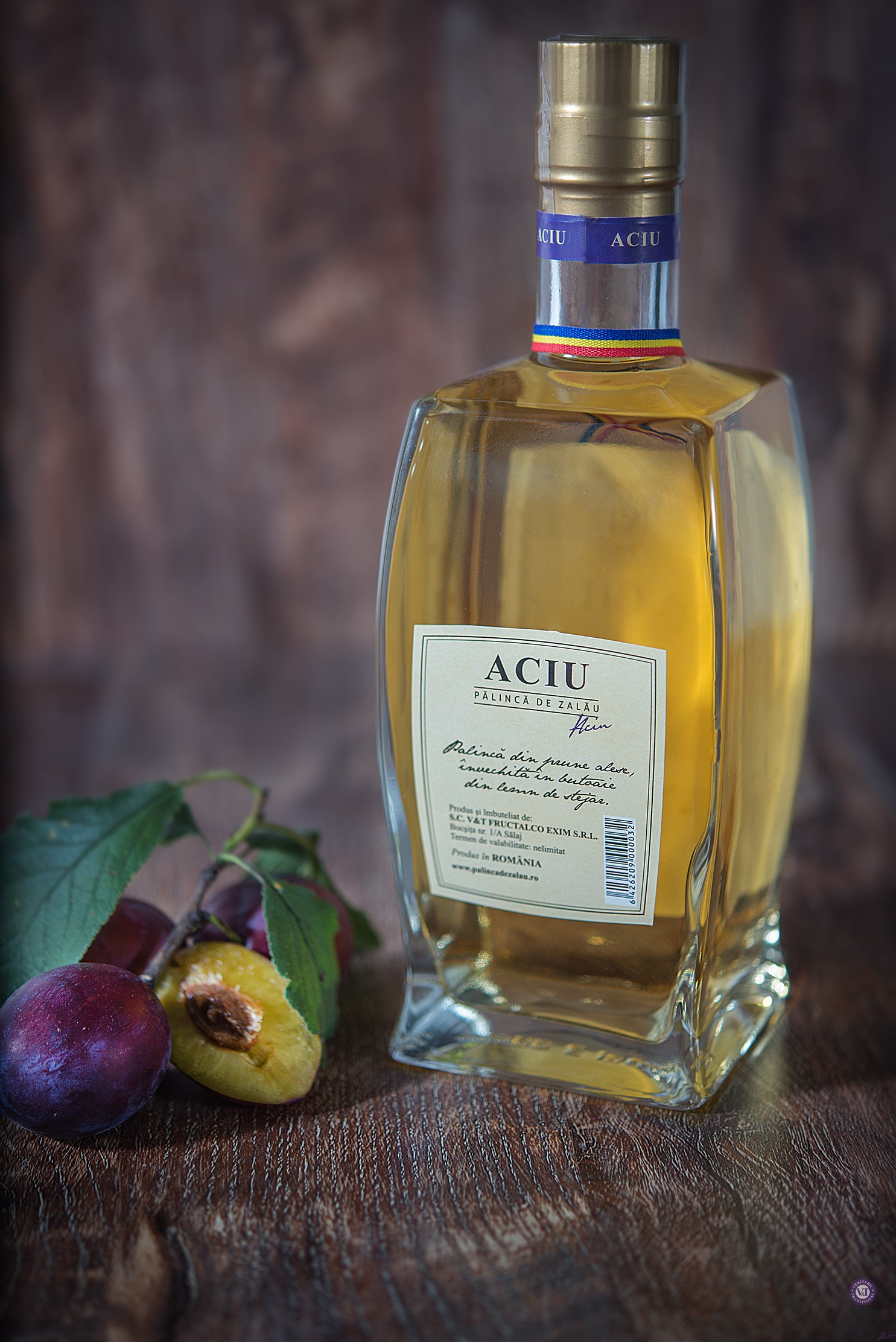 învechită în butoaie din lemn de stejar, de unde provine aroma şi culoarea aurie.