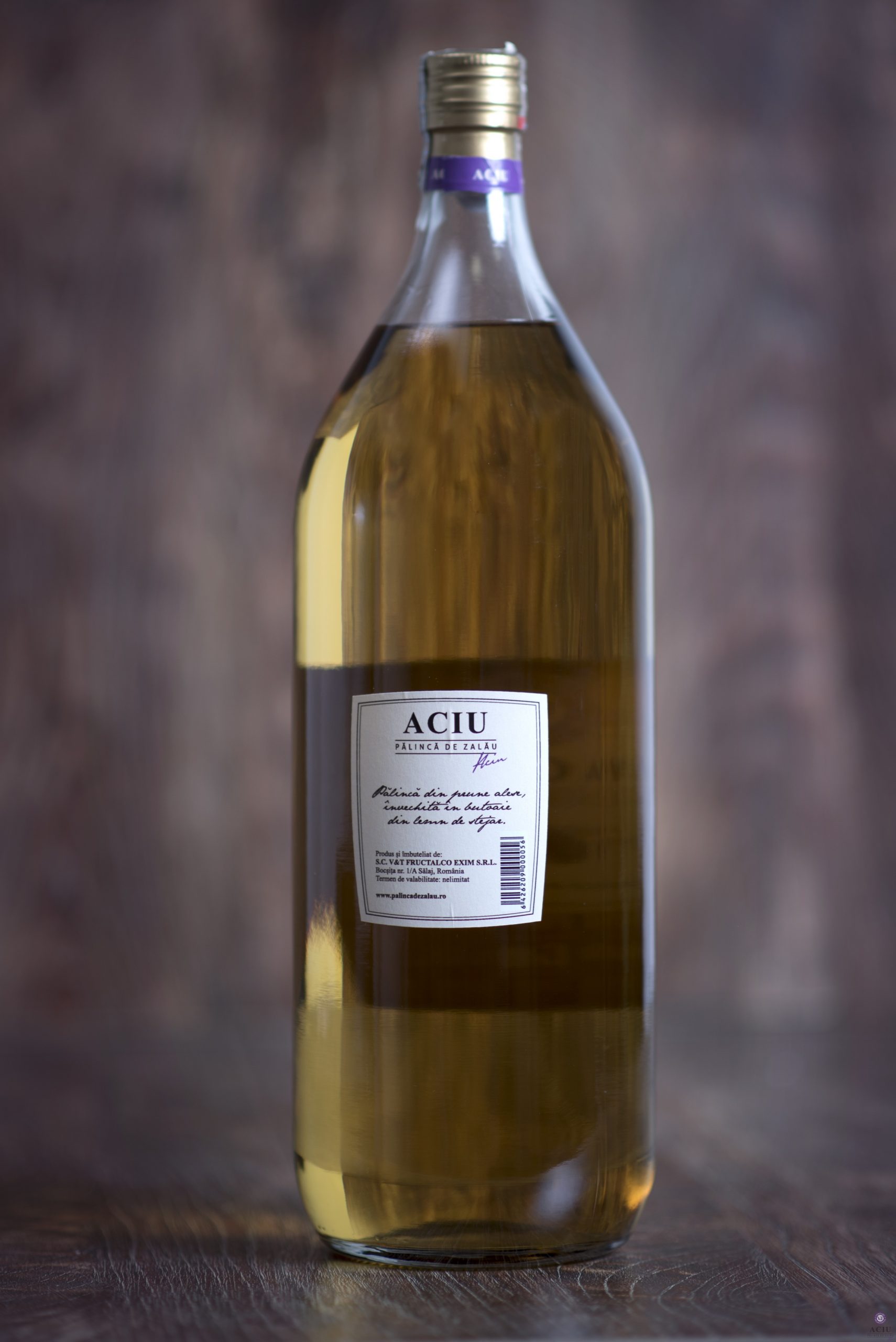 învechită în butoaie din lemn de stejar, de unde provine aroma şi culoarea aurie.